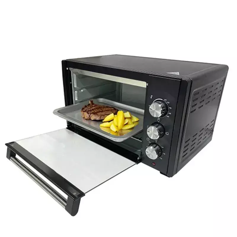 Su diseño práctico incluye 4 resistencias de acero inoxidable que aseguran una cocción uniforme y eficiente, mientras que la temperatura ajustable hasta 250°C y el timer programable con aviso sonoro te brindan total control. Además, su bandeja antiadherente y rejilla metálica son perfectas para cualquier receta, y sus accesorios removibles facilitan la limpieza.